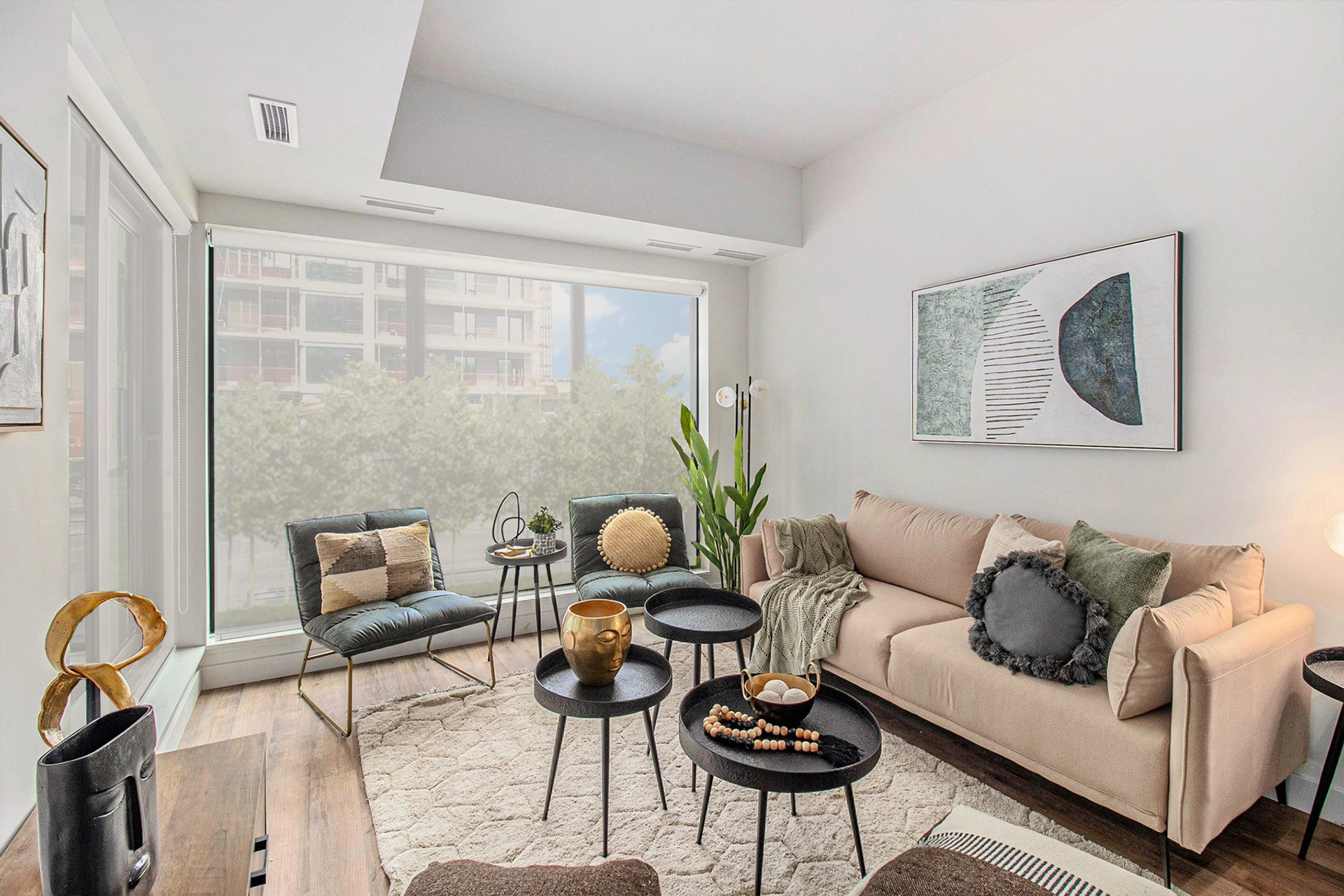 These living rooms offer a welcoming blend of warmth and modern style, highlighted by floor-to-ceiling windows that allow natural light to stream across soft-toned furnishings. An environment where residents can unwind, entertain, or simply soak in the sunlight and views.